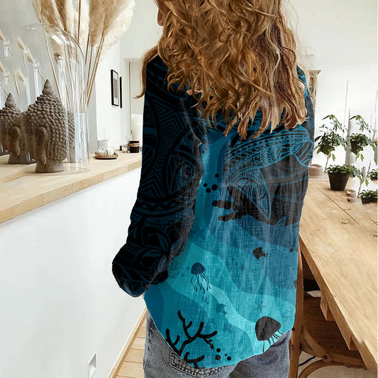 Polynesian Shark Damen Freizeithemd Under The Waves LT7