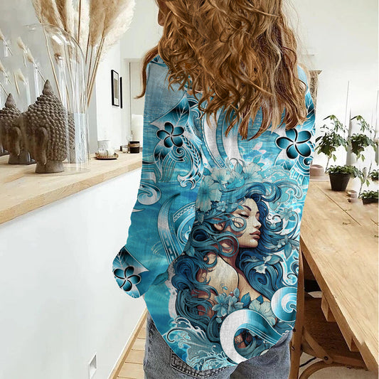 Hawaii Namaka Göttin des Meeres Damen Freizeithemd Polynesian Style LT05