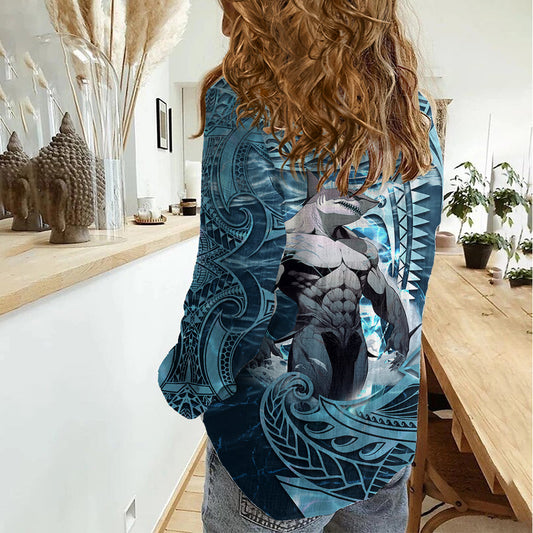 Hawaiianischer Haigott Kamohoalii Damen Freizeithemd im polynesischen Stil LT05