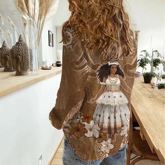 Bula Fiji Women's Day Damen Freizeithemd mit fidschianischem Tapa-Muster LT05
