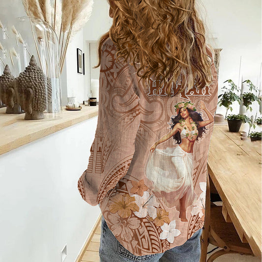 Hawaii Frauentag Damen Freizeithemd mit polynesischem Muster LT05