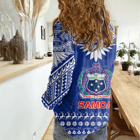 Toa Samoa Weihnachten Damen Freizeithemd Samoa Siva Tau Manuia Le Kerisimasi Blue Vibe LT9