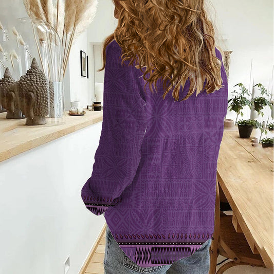 Lila Afrikanisches Dashiki mit fidschianischem Tapa-Muster Damen Freizeithemd LT14