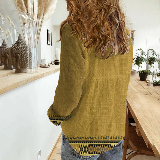 Goldfarbenes afrikanisches Dashiki mit fidschianischem Tapa-Muster für Damen, Freizeithemd LT14