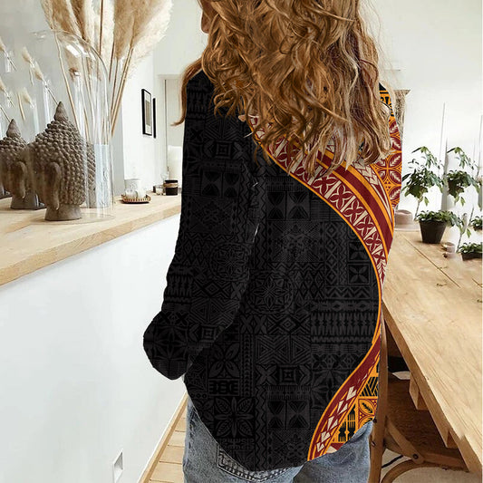 Samoa Siapo Motiv und Tapa Muster Half Style Damen Freizeithemd Schwarz Farbe LT03
