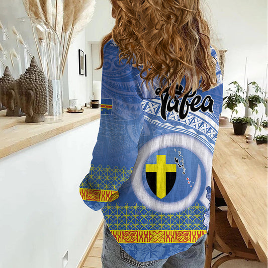 Polynesisches Muster mit Plumeria-Blumen Damen Freizeithemd Blau LT05