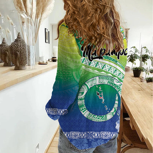 Malpampa Vanuatu Damen Freizeithemd Hibiscus Sand Zeichnung mit Pazifik Muster LT9