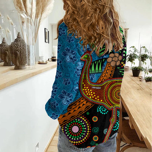 Fidschi und Australien Damen Casual Shirt Palme und Abogirinal Emu LT03