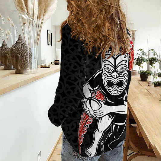 New Zealand Maori Warrior Rugby Damen Freizeithemd Maori und Silver Fern Half Style LT03