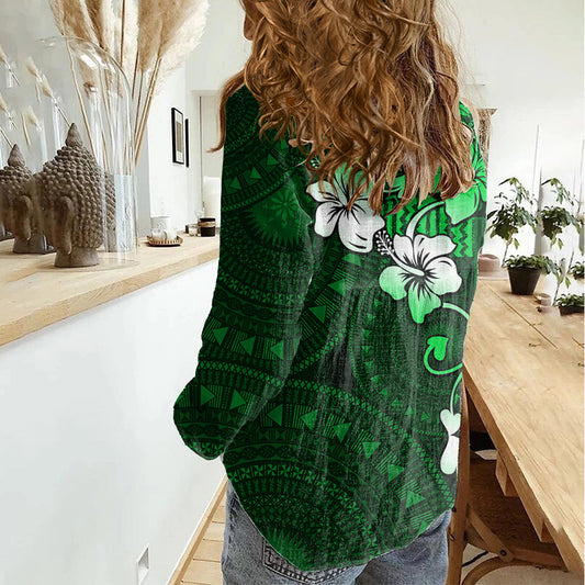 Fiji Masi Damen Freizeithemd Fijian Hibiscus Tapa Grün Version LT01