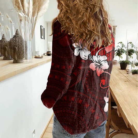 Fiji Masi Paisley Damen Freizeithemd Fijian Hibiscus Tapa Rot Version LT01