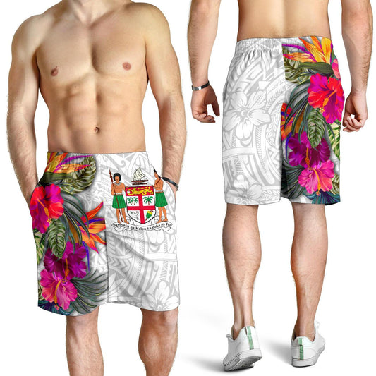 Fiji Polynesian All Over Print Herren Bermuda Shorts - Hibiskusweißes Muster
