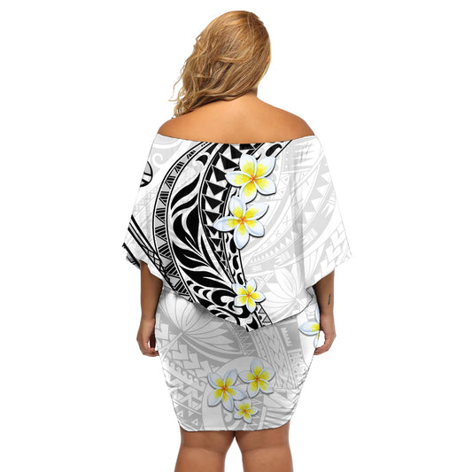Hawaii Aloha Schulterfreies Kurzes Kleid blumen Plumeria Vintage - Weiß LT7