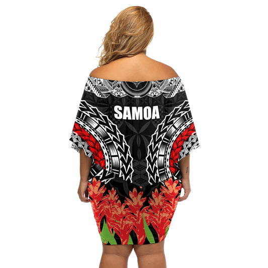 Samoa Siapo Ula Fala Schulterfreies kurzes Kleid blumen mit Ingwerpflanze, Farbe Schwarz, LT03
