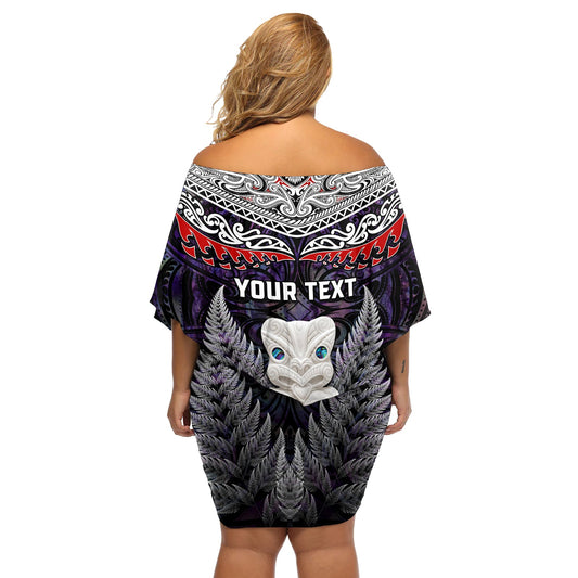 Neuseeland Hei Tiki Off Shoulder Kurzes Kleid blumen Maori Lila Papua Muschel Muster LT03