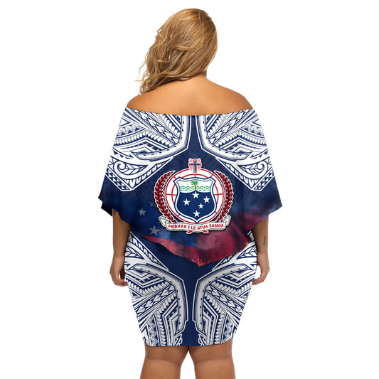 Samoa Unabhängigkeitstag Schulterfreies Kurzes Kleid blumen Himmel Feuerwerk mit Flagge Stil LT03