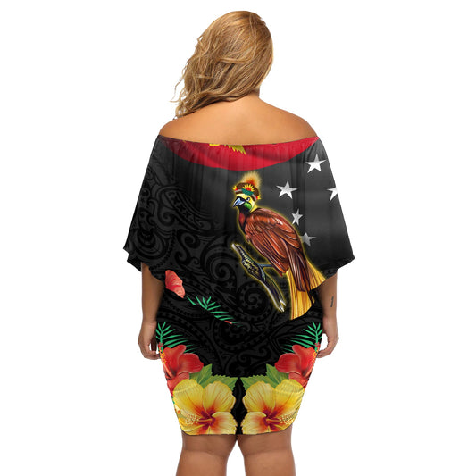 Papua-Neuguinea Unabhängigkeitstag Schulterfreies Kurzes Kleid blumen PNG Flagge und Paradiesvogel LT03