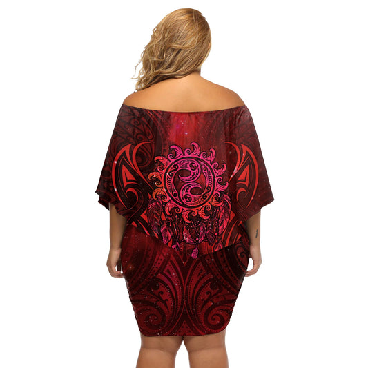 Neuseeland Traumfänger Schulterfreies Kurzes Kleid blumen Maori Koru Muster Rote Version LT05