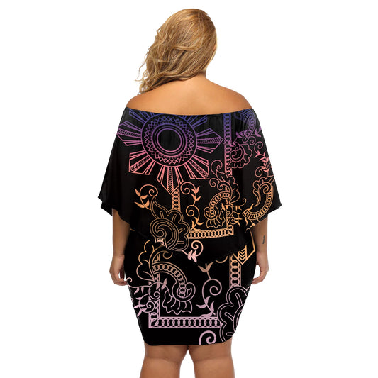 Filipino Sun Tribal Tattoo Off Shoulder Kurzes Kleider blumen Philippinen inspiriert Barong Simple Black LT9