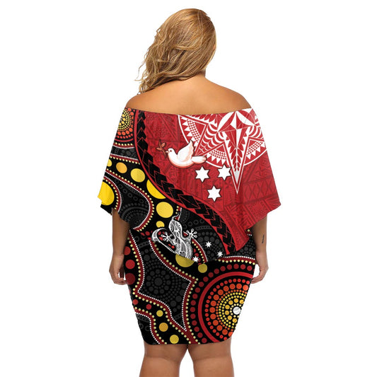 Tonga Ngatu und Australien Aboriginal Off Shoulder Kurzes Kleid Blumen Tongan Dove und Kangaroo Together LT05