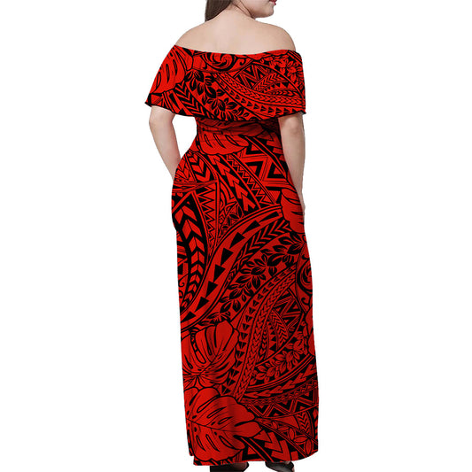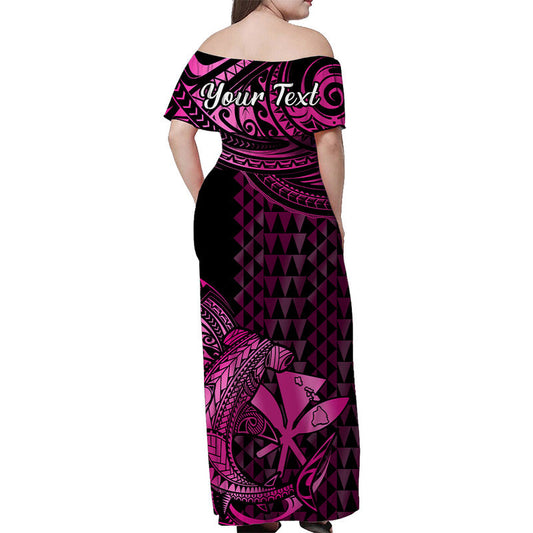 Hawaii Hammerhai Schulterfreies Langes Kleid Polynesischer Kakau Mit Kanaka Rosa LT14