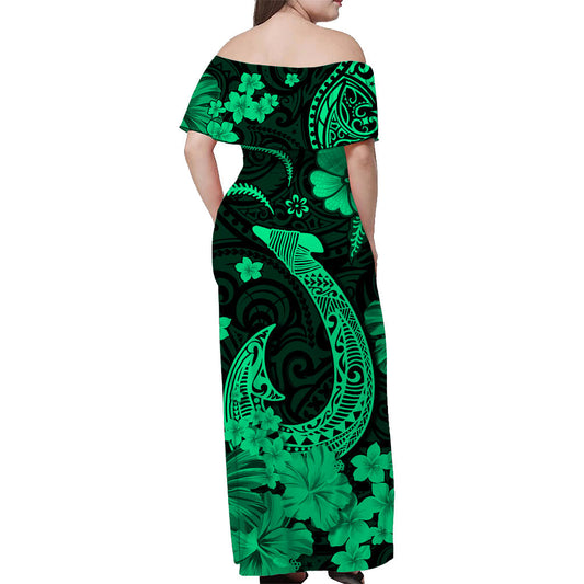 Hawaii schulterfreies langes Kleid Polynesien grün Angelhaken LT13