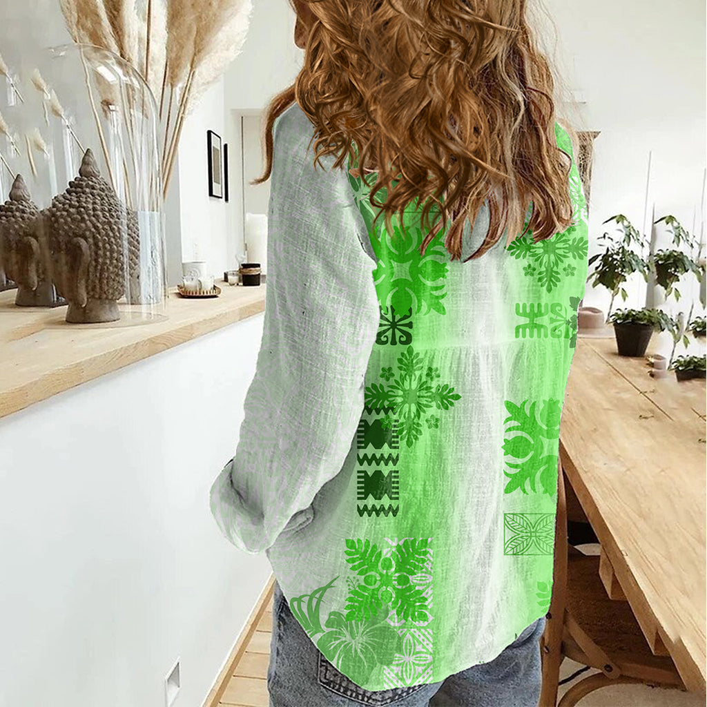 Hawaiianisches Quilt-Freizeithemd für Damen, Vintage-Muster, Grün