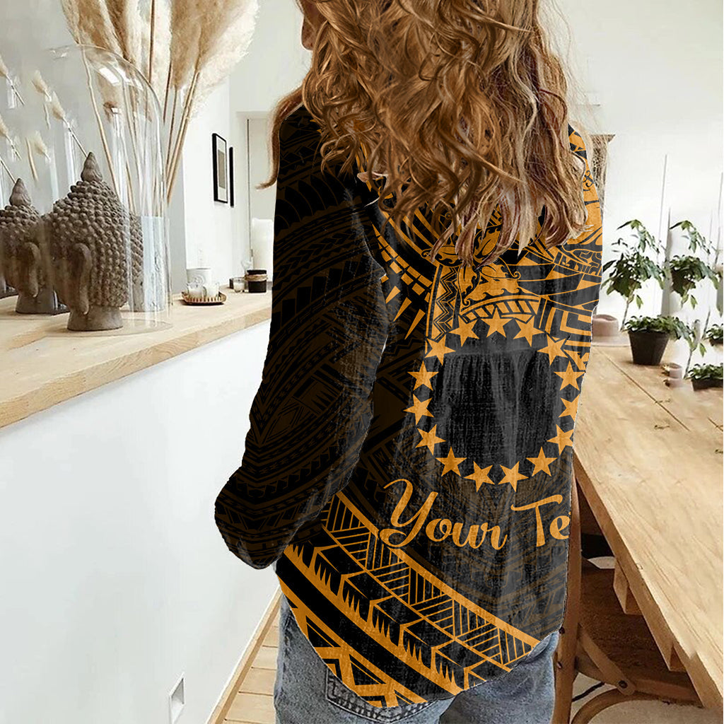 Kia Orana Cook Islands Freizeithemd für Damen mit Kreisen und Sternen und floralem Goldmuster