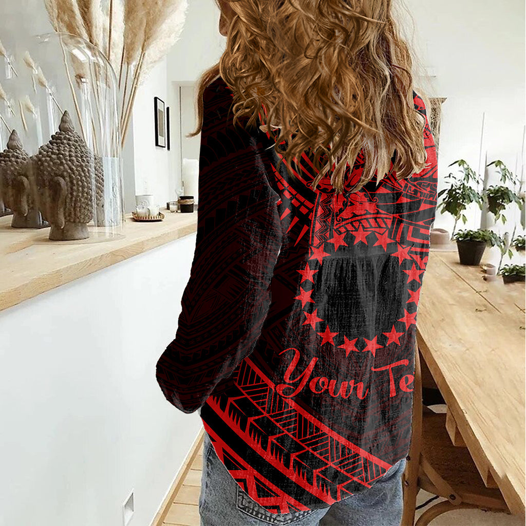 Kia Orana Cook Islands Freizeithemd für Damen mit Kreisen und Sternen und rotem Blumenmuster