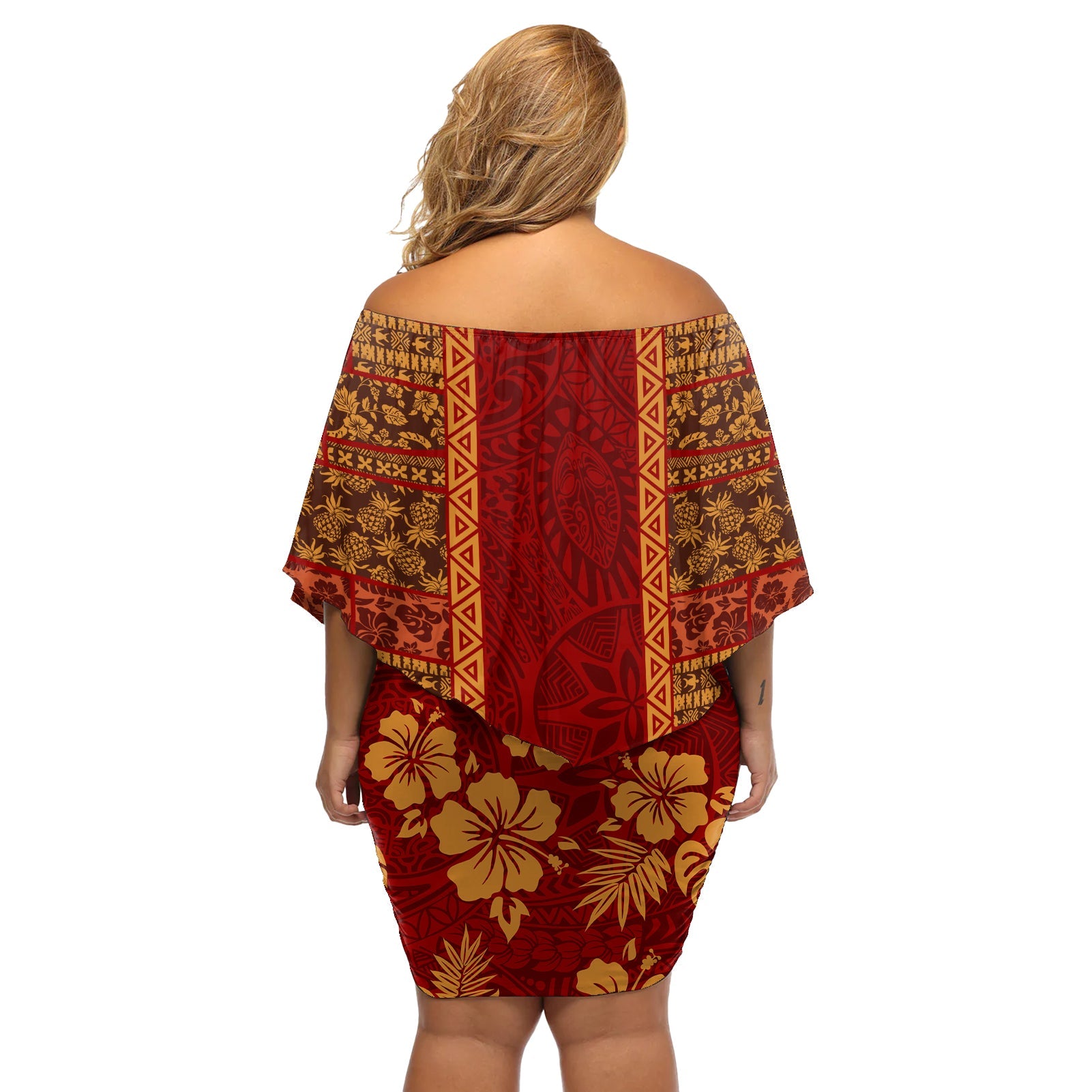 Hawaii-Stil Hibiskus und Stammes-Element Stoff Patchwork Off Schulter kurzes Kleider Blumen LT03