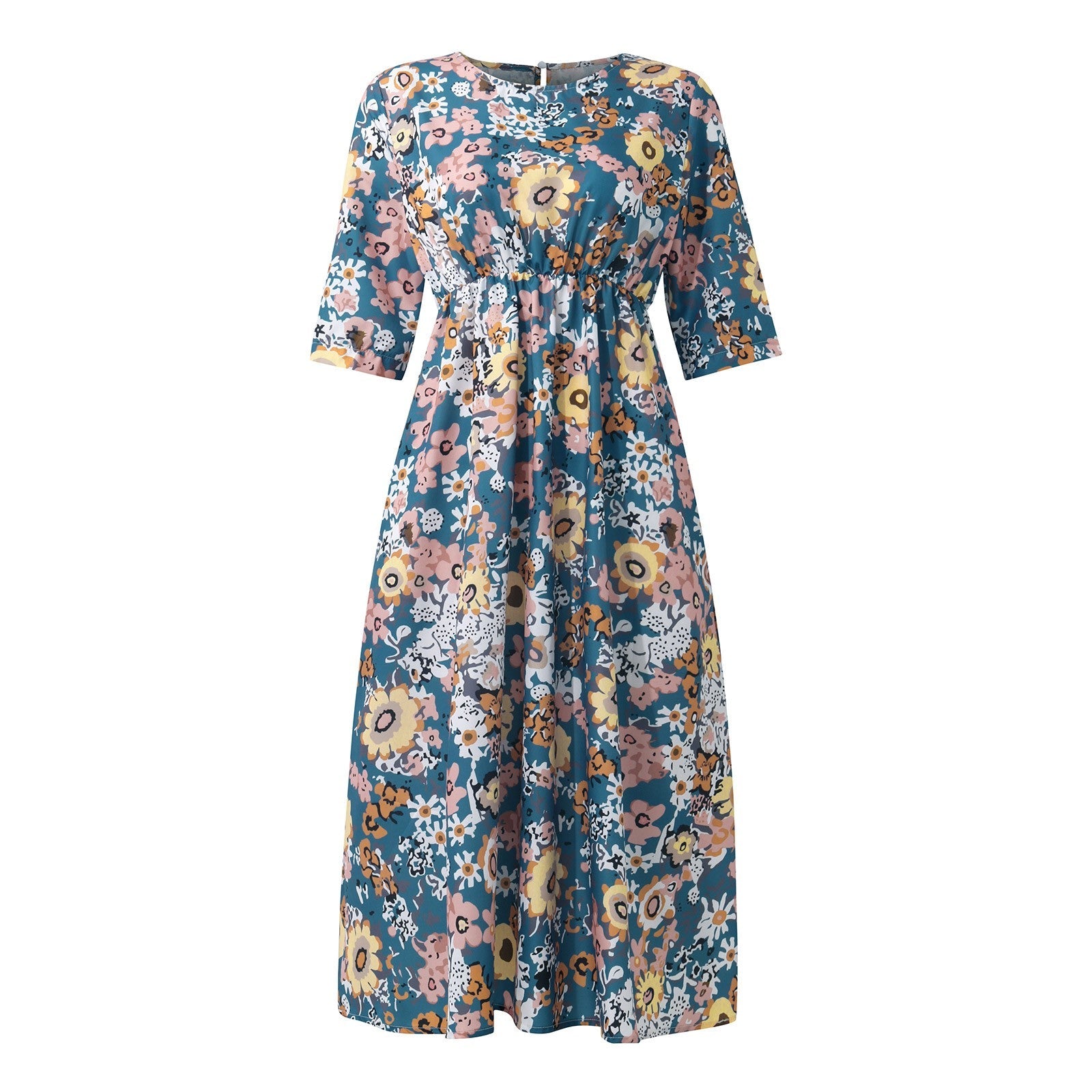 Sie erhalten den Eindruck einer eleganten Dame Kombinieren Sie dieses Kleid mit Bohemian-Print mit schmalen High Heels und einer auffälligen Handtasche. Großes Saumdesign kann Ihre Figur optisch schlank und voller Attraktivität machen. Das Rundhalskleid mit halblangen Ärmeln für Damen ist sehr schlicht und lässig.