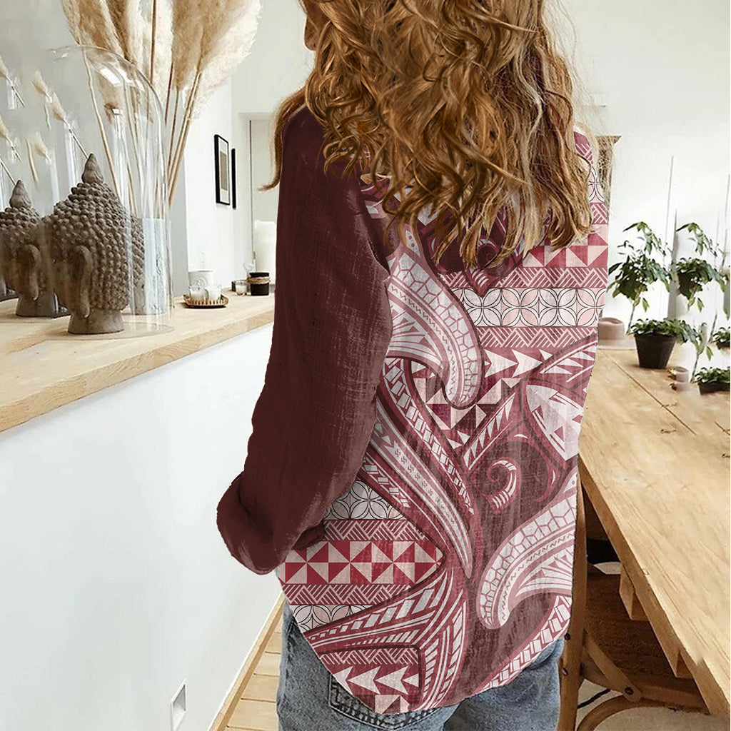Vintage-Hammerhai-Freizeithemd für Damen zum Valentinstag, Pasifika-Sataoa-Muster – Kirsche