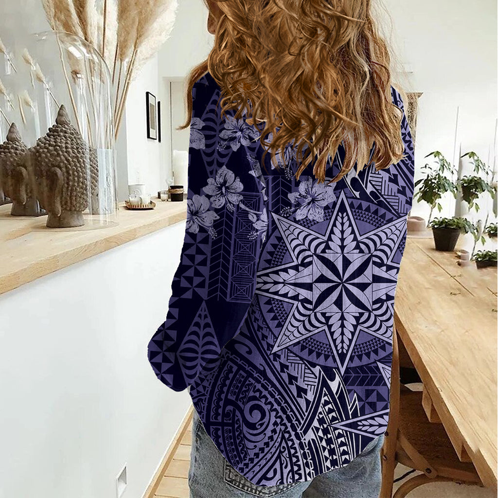 Vintage Tonga Tribal Ngatu Muster Damen Casual Shirt mit Pacific Floral Pink Art LT9